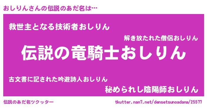 | 男性向けラノベタイトル風あだ名 | 『おしりんの憂鬱』『オシリンスレイヤー』 |