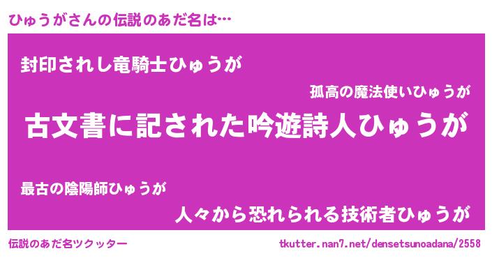 | ヘコむあだ名 | 『ひゅうが(小並感)』『ひゅもー』 |
