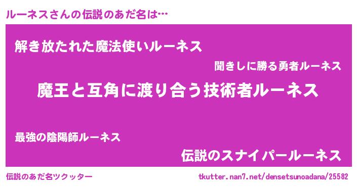 | 女子向けラノベタイトル風あだ名 | 『ルーネス恋絵巻』『闇のルーネス』 |