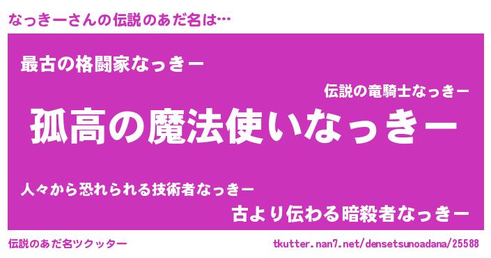 | ヒーロー風カッコイイあだ名 | 『暗黒騎士ナッ』『ウルトラなっきーマン』 |