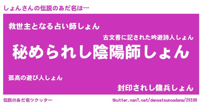| 意味不明あだ名 | 『住所不定無職しょん(84歳)』『自称しょん』 |