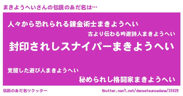 | 胡散臭い通販商品みたいなあだ名 | 『億万長者になれる霊験あらたかなお札…その名も「まきようへい」』 |