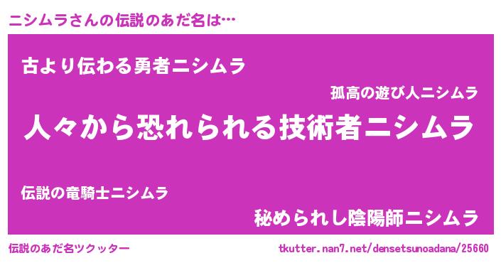 | ヒーロー風カッコイイあだ名 | 『正義の使者ニシムラ』『仮面ニシダー』 |