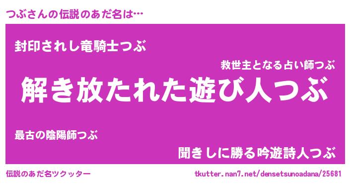 | ファンタジー風あだ名 | 『ファントムツブス』『ツブフェル』 |