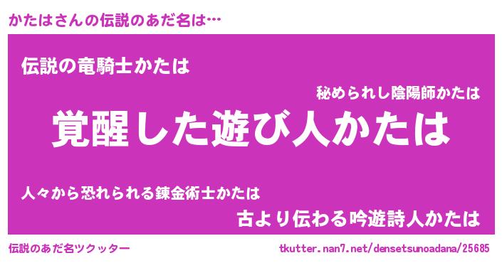 | ヒーロー風カッコイイあだ名 | 『仮面カタダー』『暗黒騎士カタ』 |