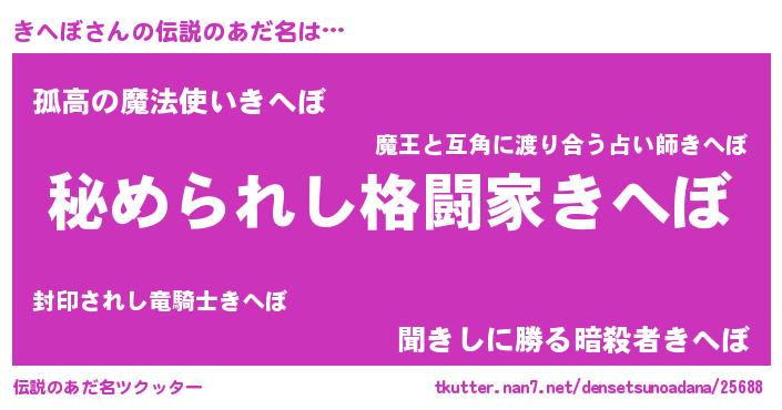 | 意味不明あだ名 | 『自称きへぼ』『きへぼフォーエバー』 |