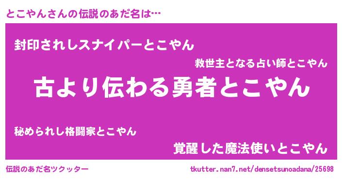 | ヘコむあだ名 | 『とこやん(苦笑)』『とこっふぃ~』 |
