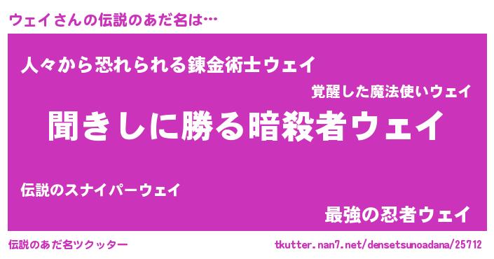 | ヒーロー風カッコイイあだ名 | 『ネオウェイ』『愛の使者ウェイ』 |