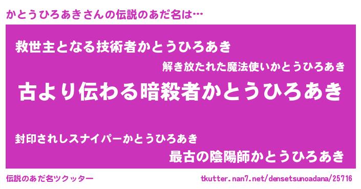 | ヘコむあだ名 | 『かとうひろあき(苦笑)』『豆乳』 |
