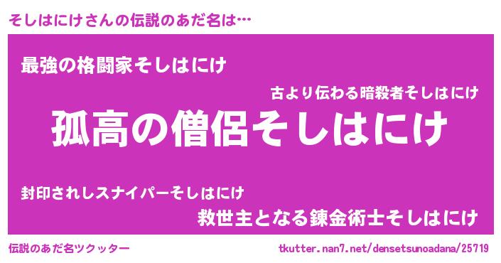 | ヒーロー風カッコイイあだ名 | 『超時空戦士ソシハニケ』『幻影騎士ソシ』 |
