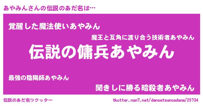 | ヒーロー風カッコイイあだ名 | 『スーパーアヤミン』『仮面アヤダー』 |