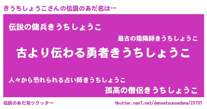 | ヒーロー風カッコイイあだ名 | 『ネオキウチショウコ』『天弓騎士キウ』 |
