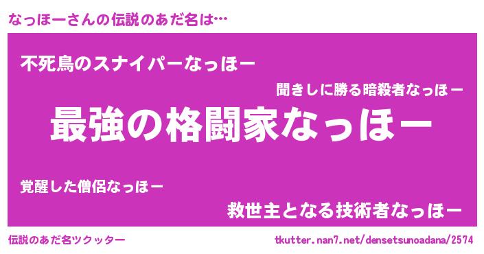 | 男性向けラノベタイトル風あだ名 | 『うちの娘の為ならば、俺はもしかしたらなっほーも倒せるかもしれない。』 |