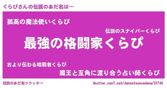 | ヒーロー風カッコイイあだ名 | 『最強戦士クラピ』『ウルトラくらぴマン』 |