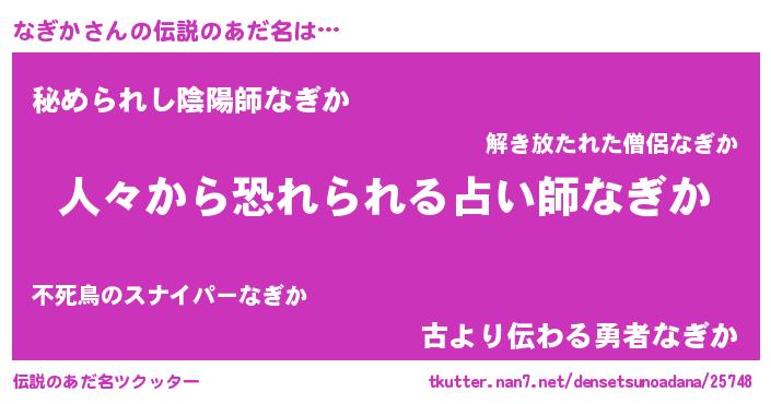 | ヒーロー風カッコイイあだ名 | 『正義の使者なぎか』『超時空戦士ナギカ』 |