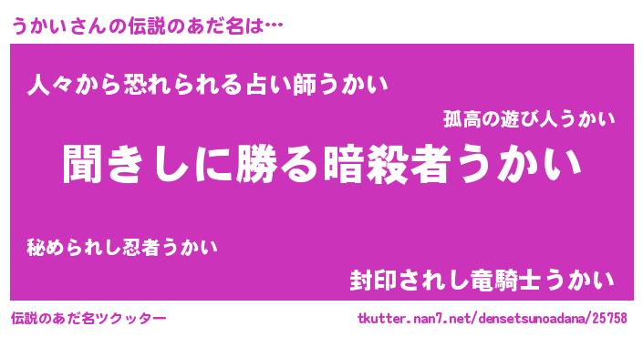 | ヒーロー風カッコイイあだ名 | 『仮面ウカダー』『ネオウカイ』 |