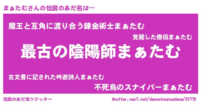 | ファンタジー風あだ名 | 『ゼマァトゥ』『エターナルマァタムー』 |