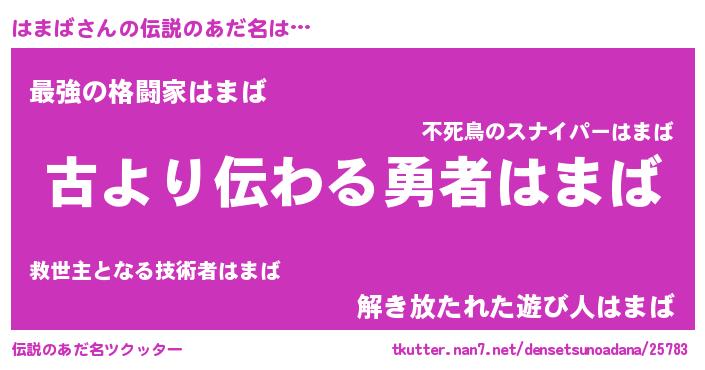 | 意味不明あだ名 | 『永久保存はまば』『はまばフォーエバー』 |