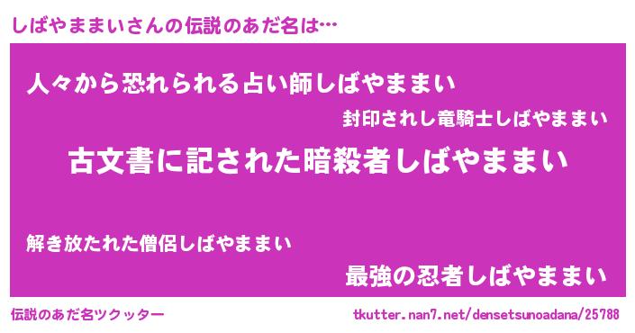 | 胡散臭い通販商品みたいなあだ名 | 『前代未聞の健康食品…その名も「しばやままい」』 |