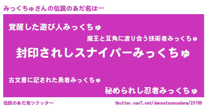 | 胡散臭い通販商品みたいなあだ名 | 『億万長者になれる霊験あらたかなお札…その名も「みっくちゅ」』 |