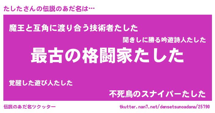 | 意味不明あだ名 | 『たしたフォーエバー』『ペロリンたした』 |