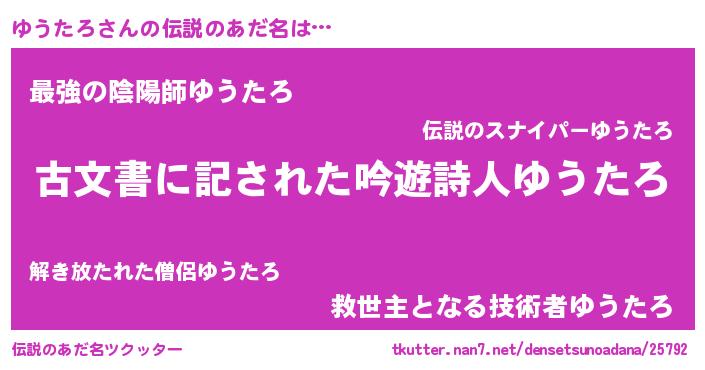 | 男性向けラノベタイトル風あだ名 | 『ゆうたろ~年齢イコール彼女いない歴の魔法使い~』 |