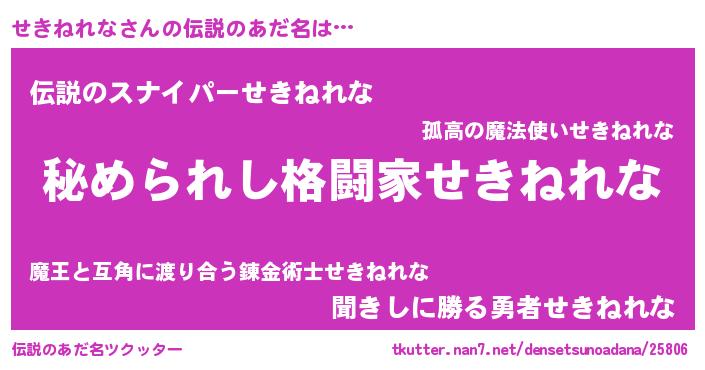 | 意味不明あだ名 | 『せきねれなフォーエバー』 |