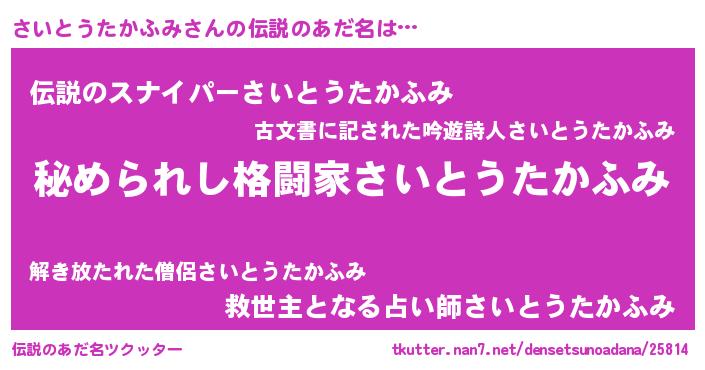 | 意味不明あだ名 | 『さいとうたかふみフォーエバー』 |