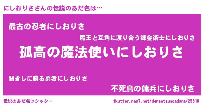 | 意味不明あだ名 | 『とにかく怪しいにしおりさ』 |