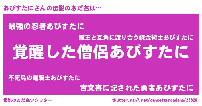 | 意味不明あだ名 | 『とにかく怪しいあびすたに』 |
