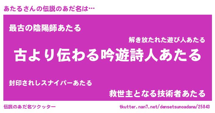 | 意味不明あだ名 | 『永久保存あたる』『あたるフォーエバー』 |