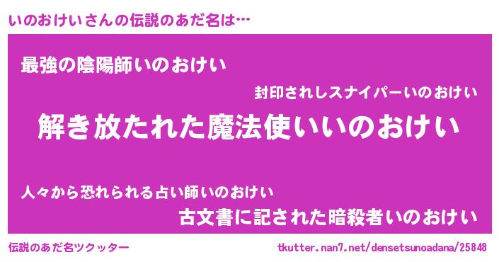 | ヒーロー風カッコイイあだ名 | 『ウルトラ戦士イノオケイ』 |