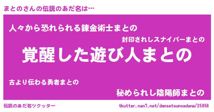 | ヘコむあだ名 | 『まとぷりん』『つくし』『まともー』 |