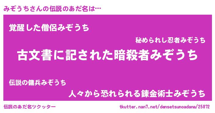 | ヒーロー風カッコイイあだ名 | 『ネオミゾウチ』『暗黒騎士ミゾ』 |
