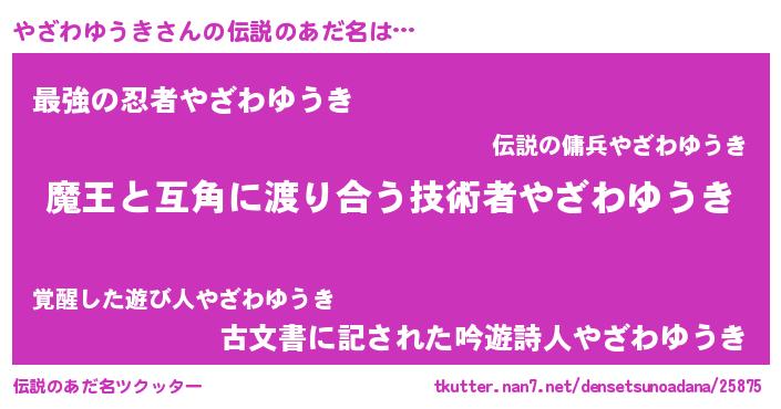 | 男性向けラノベタイトル風あだ名 | 『ノーゲーム・ノーヤザワユウキ』 |