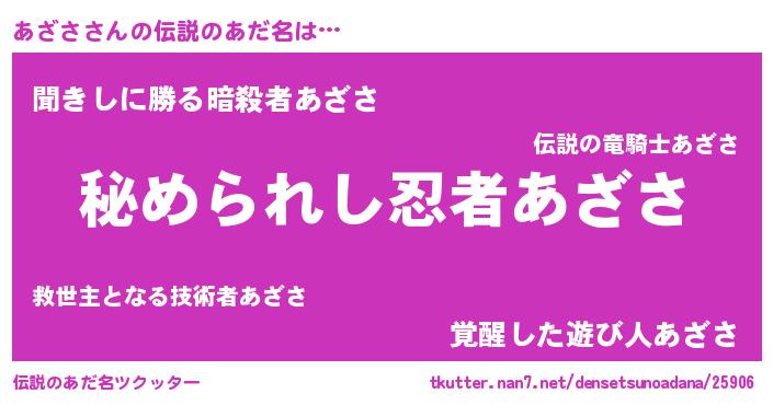 | ファンタジー風あだ名 | 『エターナルアザサー』『アザディッシュ』 |