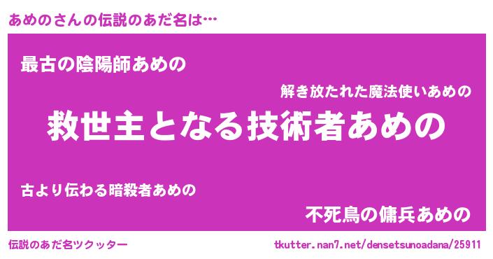 | 欧米人風あだ名 | 『ダレノガレあめの』『ダニエルあめの』 |