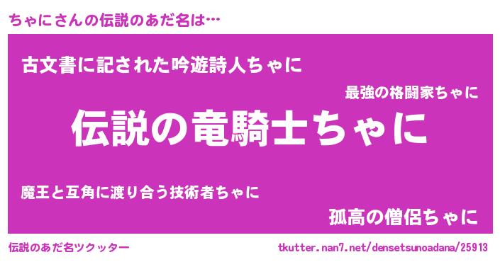 | 男性向けラノベタイトル風あだ名 | 『緋弾のチャニ』『魔法科高校のちゃに』 |