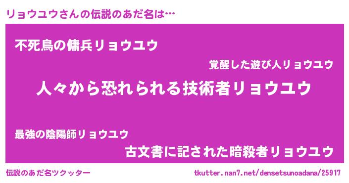 | 意味不明あだ名 | 『自称リョウユウ』『ペロリンリョウユウ』 |