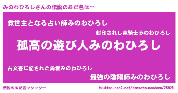 | 意味不明あだ名 | 『とにかく怪しいみのわひろし』 |