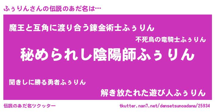 | ファンタジー風あだ名 | 『エターナルフゥリンー』『ゼフゥトゥ』 |