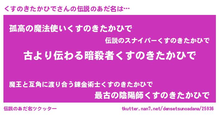 | 男性向けラノベタイトル風あだ名 | 『くすのきたかひでという概念が存在しない退屈な世界 』 |