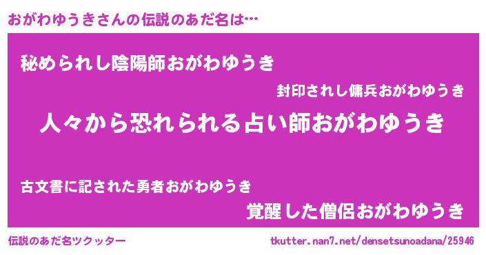 | 意味不明あだ名 | 『眠気覚ましガムおがわゆうき味』 |