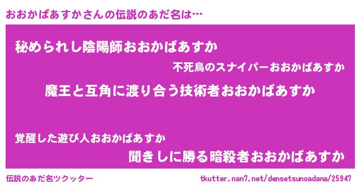 | 欧米人風あだ名 | 『おおかばあすか・ステッグマイヤー』 |