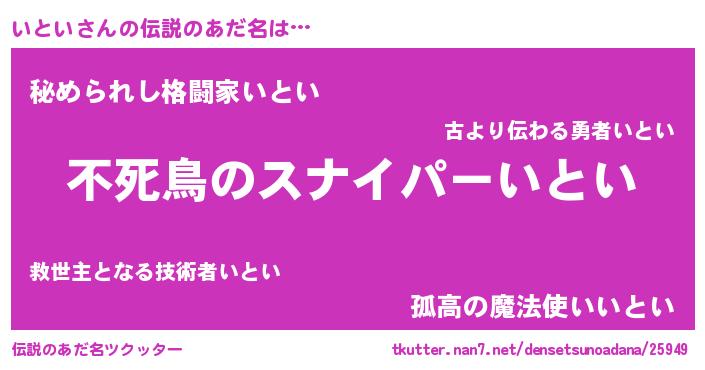 | ヒーロー風カッコイイあだ名 | 『仮面イトダー』『スーパーイトイ』 |