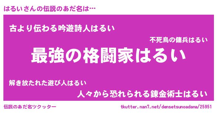 | ヘコむあだ名 | 『酢こんぶ』『はるい(小並感)』 |