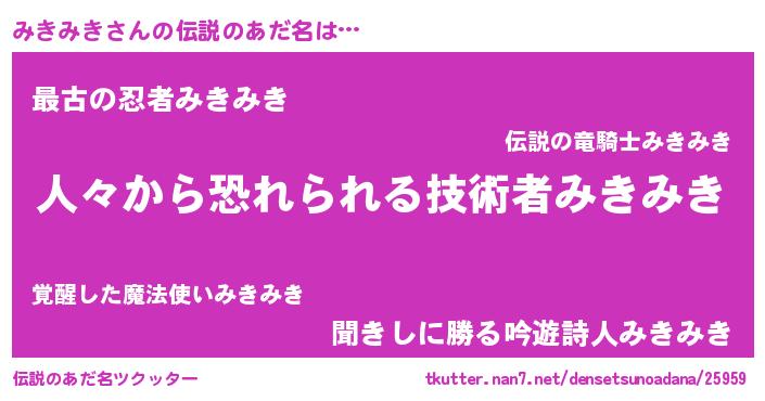 | ヒーロー風カッコイイあだ名 | 『正義の使者みきみき』『仮面ミキダー』 |