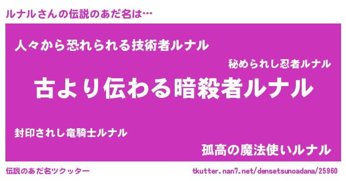 | ヒーロー風カッコイイあだ名 | 『ネオルナル』『正義の使者ルナル』 |