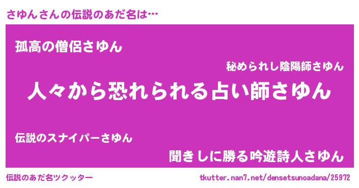| 男性向けラノベタイトル風あだ名 | 『おまえをオタクにしてやるから、俺をさゆんにしてくれ! 』 |