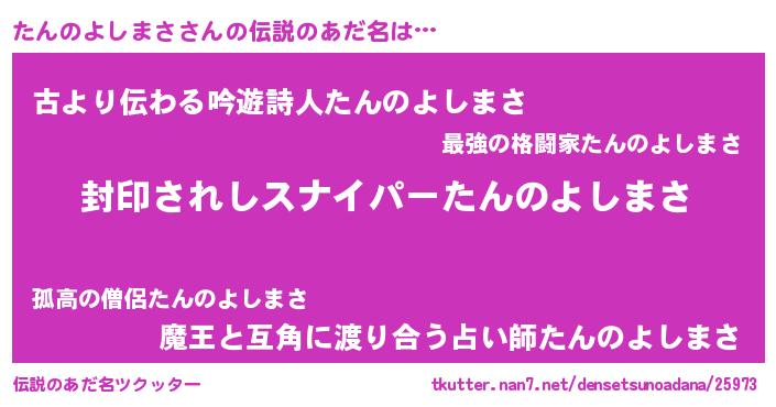 | 胡散臭い通販商品みたいなあだ名 | 『億万長者になれる霊験あらたかなお札…その名も「たんのよしまさ」』 |